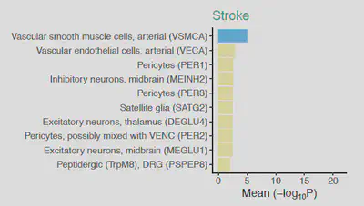 Stroke and migraine were significantly associated with arterial smooth muscle cells (VSMCA), indicating that vascular process play a central role in these traits.